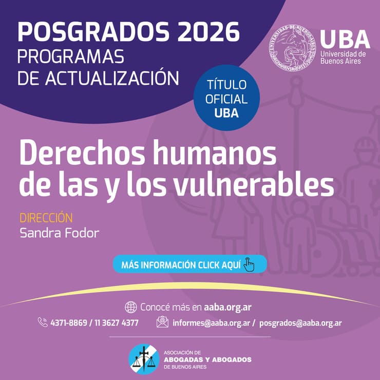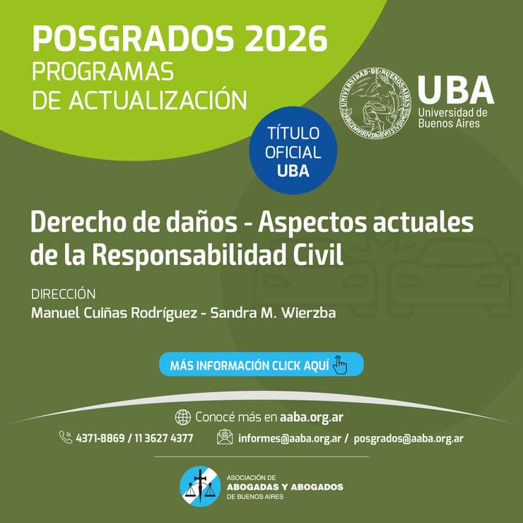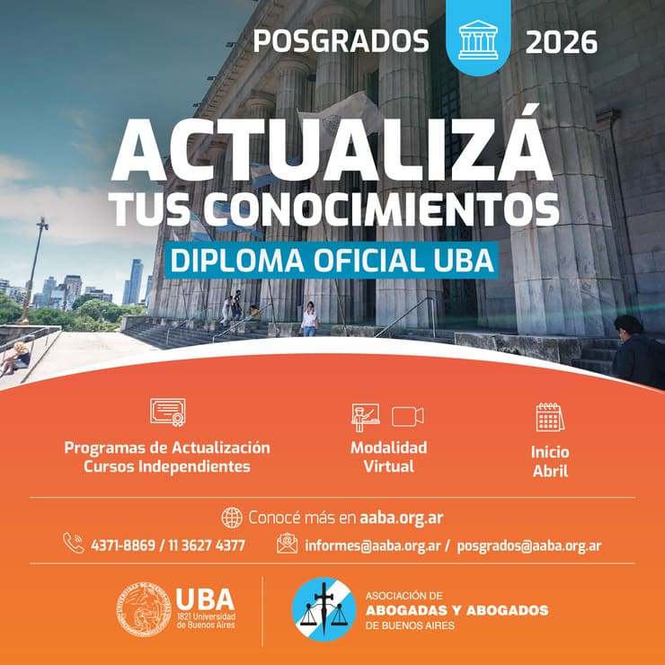 Posgrados UBA – AABA 2026 La Asociación de Abogadas y Abogados de Buenos Aires, en convenio con la Facultad de Derecho de la Universidad de Buenos Aires, presenta la oferta 2026 de Programas de Actualización y Cursos Independientes, con diploma...